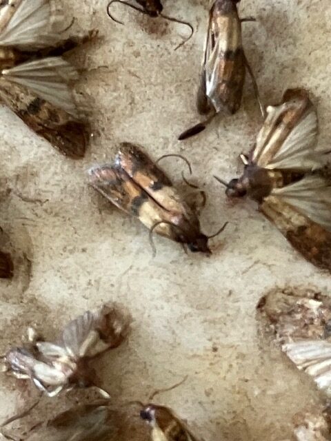 You may find insects in their juvenile, worm-like stage infesting your food sources or lurking on your shelves or cupboards. These larvae can contaminate stored produce with webbing and frass. Both larvae and pupae are quite common in and around stored food products.